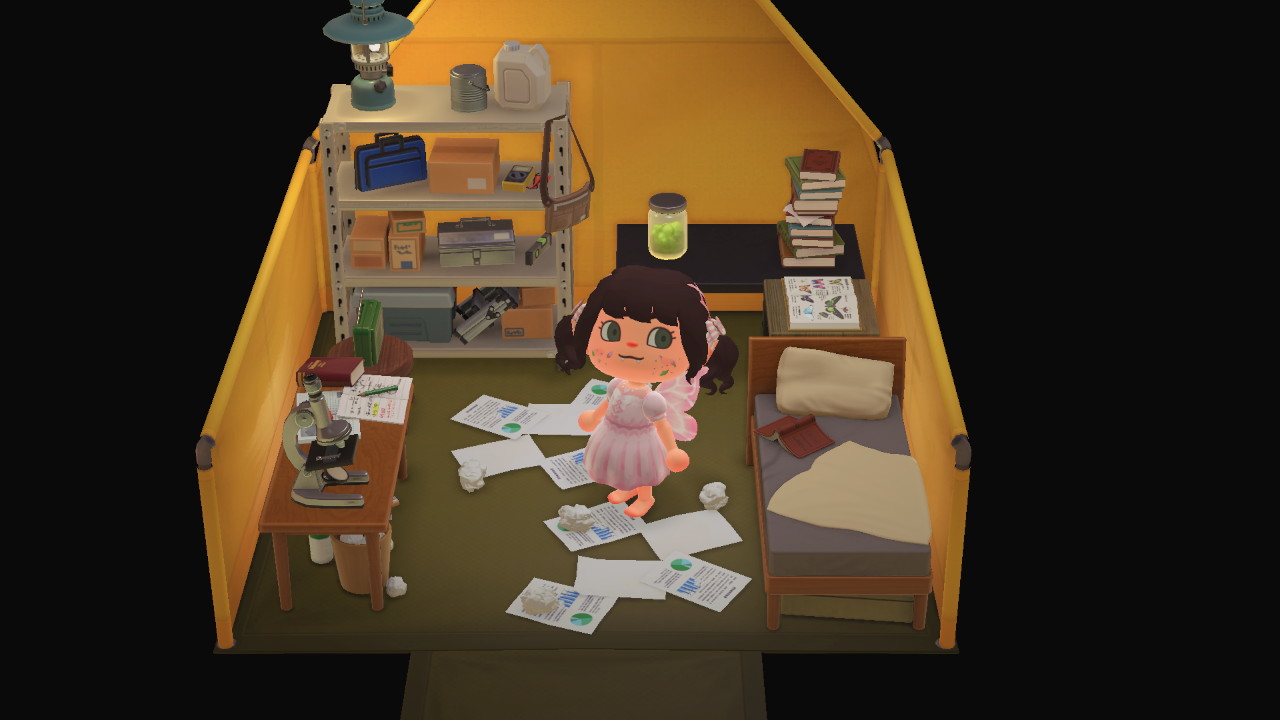 Inside Mel’s tent was a lot of books and studying equipment. I feel like he probably loves living nearby to Diana due to a lot butterflies and bugs inhabiting that part of the island.
