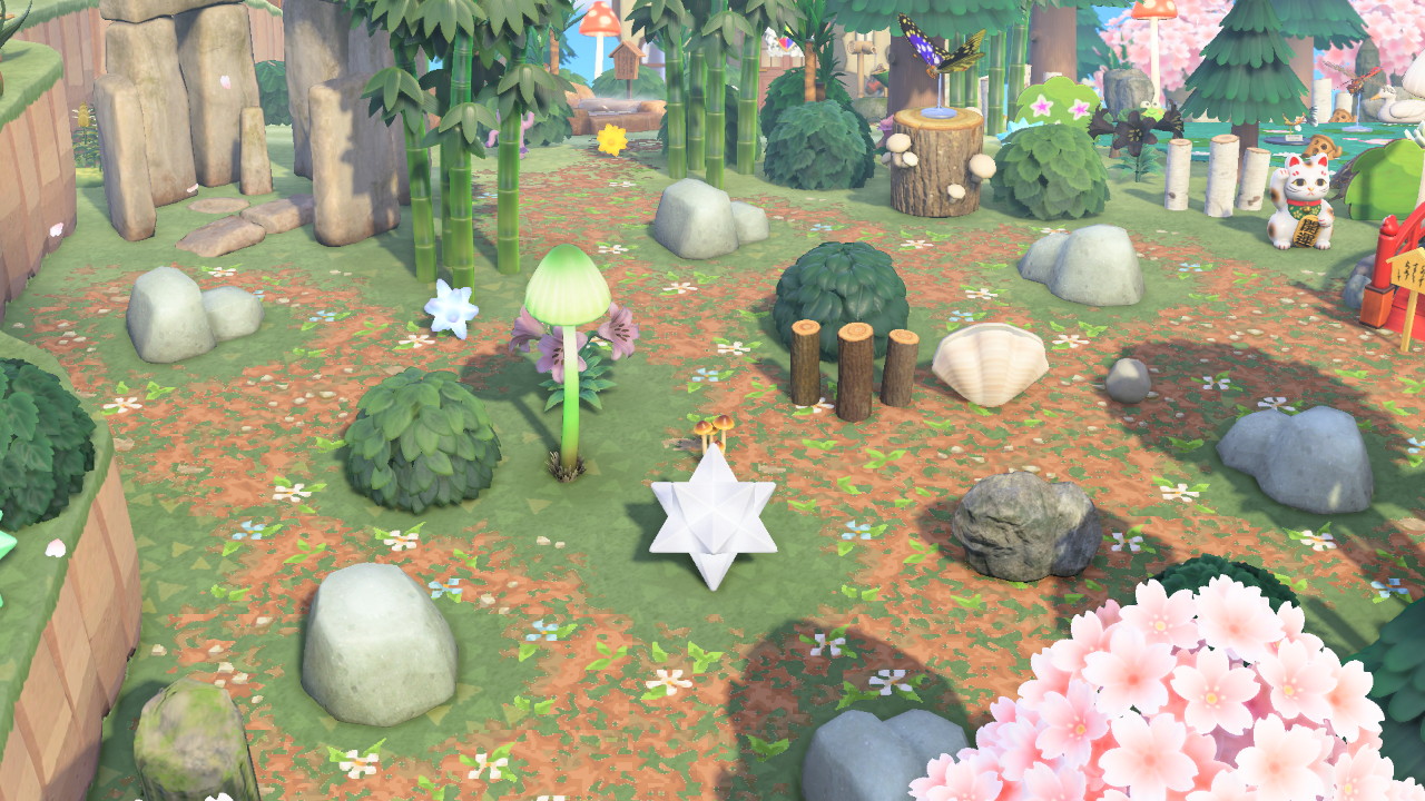 Nearby to the island rep’s home is a rock garden! I really love rock gardens in AC: New Horizons, I think they look super pretty when they’re decorated to match an island’s aesthetic. I hope to do one on my fairycore island— RoseBelle.