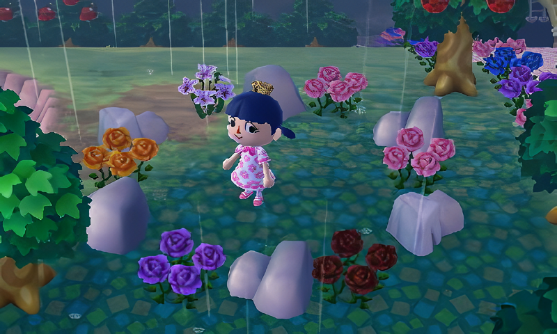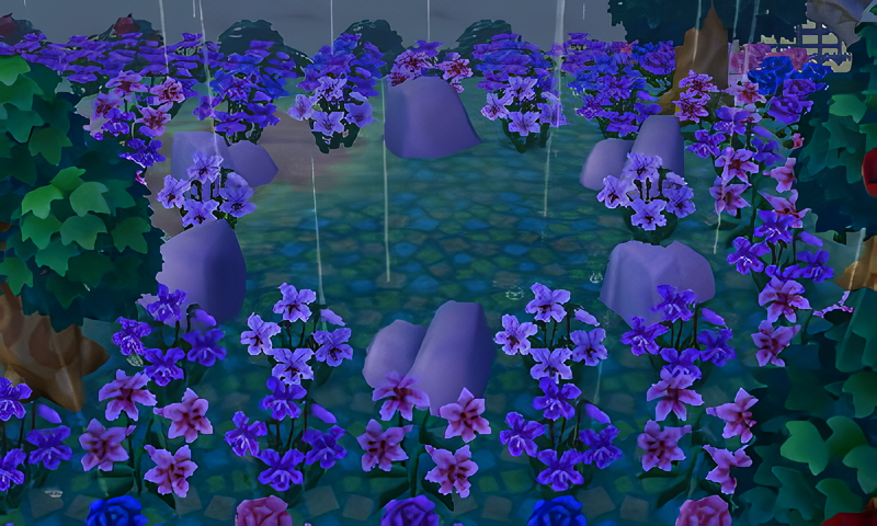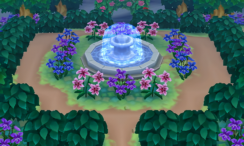 I decided to add a rock garden just north of the fountain that I built not too long ago; I felt inspired to build this after seeing multiple rock garden builds on AC:NH islands.