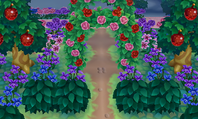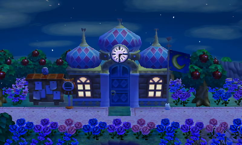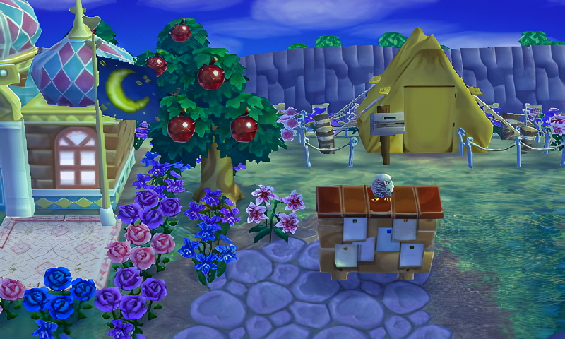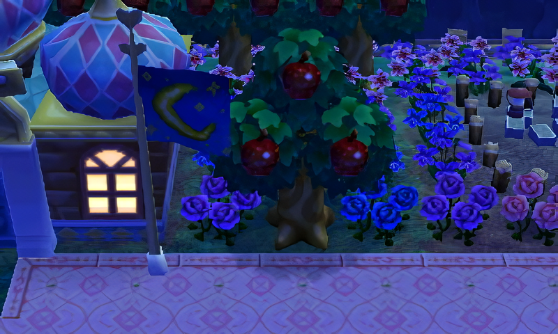 I was inspired by Amy’s crescent moon garden in her main AC:NL town Citálune and wanted to recreate it Serenity for the moon/celestial theme. This is located at the bottom of Eclipse’s royal gardens surrounding the celestial castle of Serenity.
