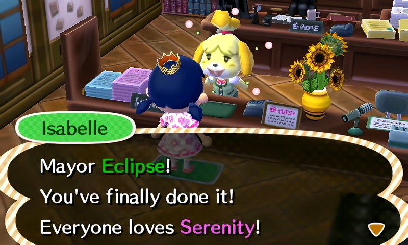 Serenity does have perfect town status! That was a pleasant surprise! 😮 Obviously Serenity has enough flowers and trees to reach perfect town status but I didn’t think I had anywhere near enough PWPs to reach it!